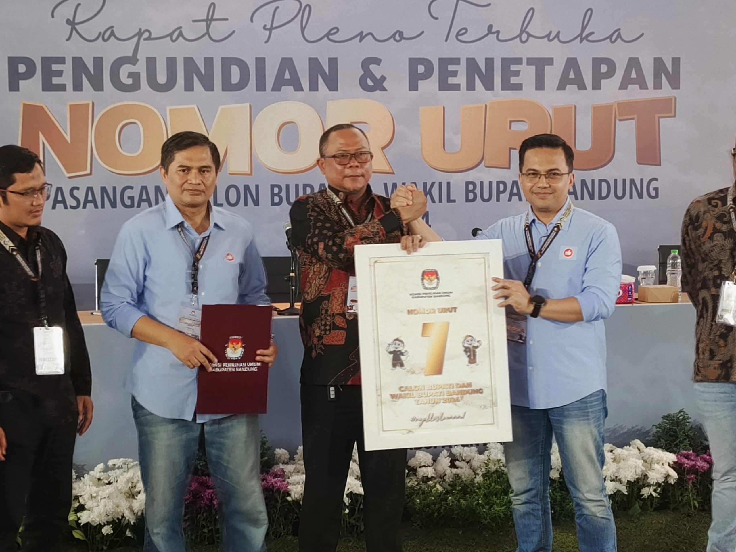 Pengundian dan Penetapan nomor urut kontestan Pilkada Kabupaten Bandung 2024 didapat lewat rapat pleno terbuka KPU Kabupaten Bandung di Kantor KPU Kabupaten Bandung, pada Senin 23 September 2024.