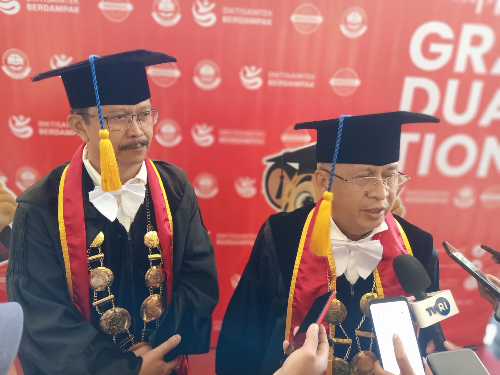 Ketua LLDIKTI Wilayah IV, Dr. Lukman, S.T., M.Hum, menegaskan bahwa penguasaan teknologi menjadi tuntutan utama yang harus dipenuhi para lulusan. Menurutnya, era digital tidak bisa lagi dihindari dan membutuhkan kesiapan kompetensi dari seluruh calon tenaga profesional. Ia juga mengajak para wisudawan untuk tidak hanya mencari pekerjaan, tetapi juga menciptakan peluang melalui kewirausahaan. “Keberhasilan tidak hadir tiba-tiba. Ada kerja keras, proses panjang, dan doa orang tua yang mengiringi,” ujarnya.