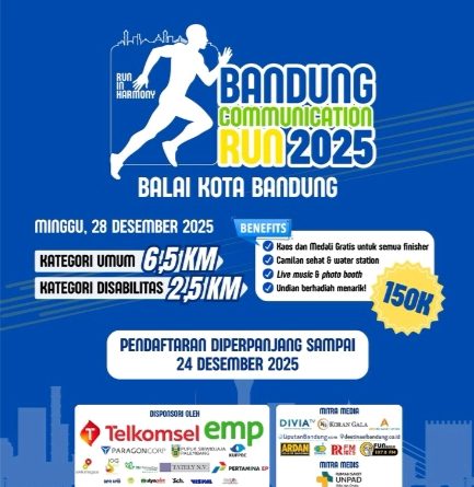 Bandung, Wartaaktual.com – Fakultas Ilmu Komunikasi Universitas Padjadjaran (Fikom Unpad) menggelar Bandung Communication Run (BCR) 2025 dengan mengusung tema “Run in Harmony”, berkolaborasi denganĀ Ikatan Alumni (IKA) Fikom Unpad yang akan digelar pada Minggu, 28 Desember 2025.